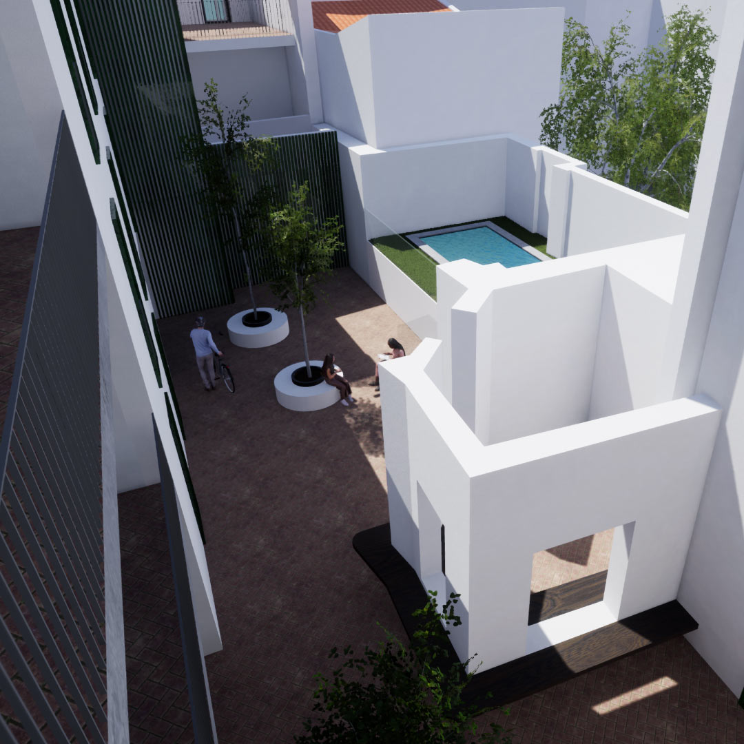 En la calle Martín Cansado, en el centro de Badajoz. Estamos construyendo un edificio que cuenta con la última tecnología en construcción y aerotérmica. En el espacio social encontramos la piscina y zona ajardinada.